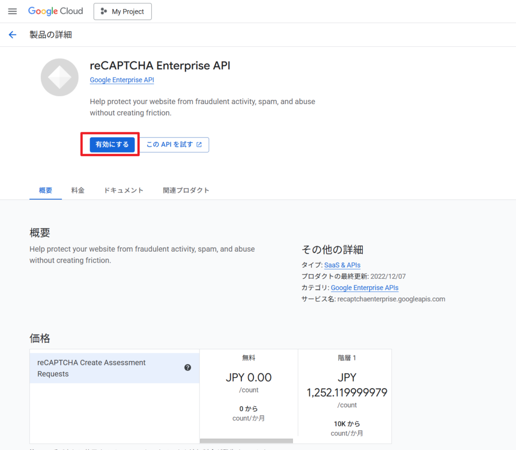 https://console.cloud.google.com/marketplace/product/google/recaptchaenterprise.googleapis.com