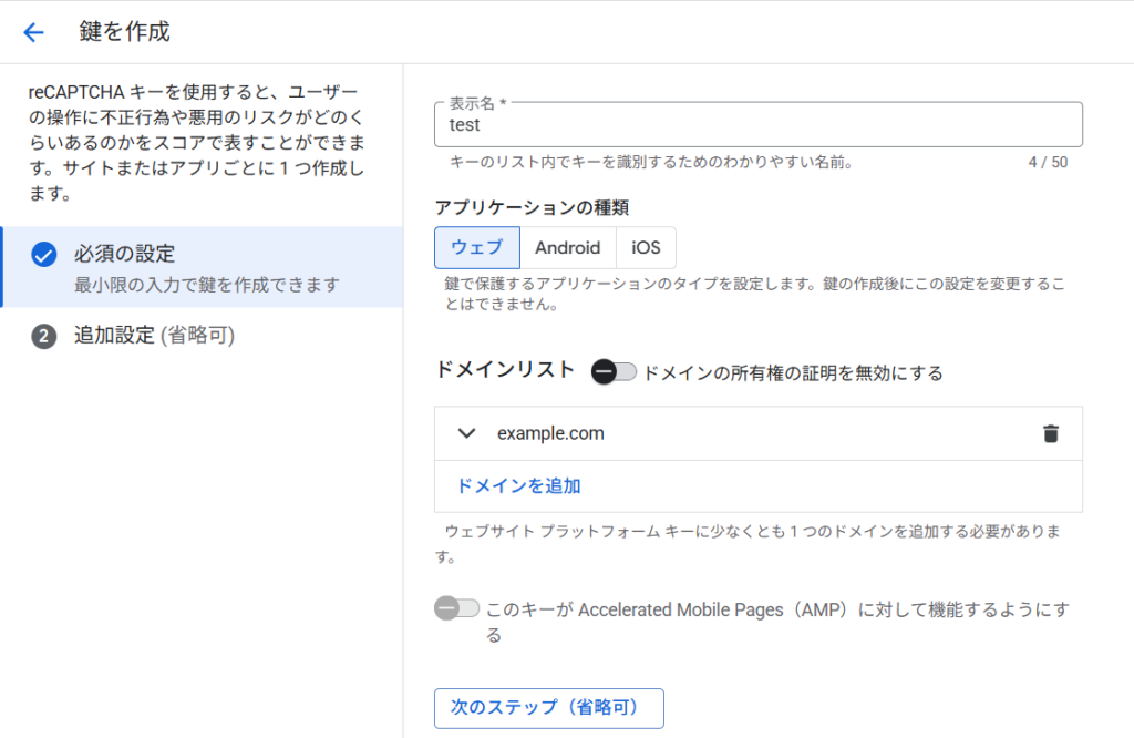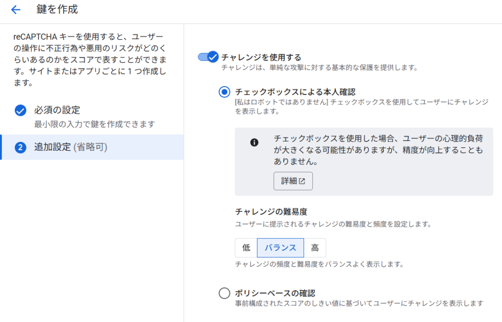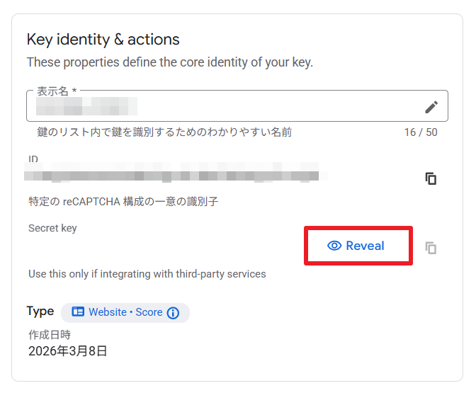 reCAPTCHAの作成準備